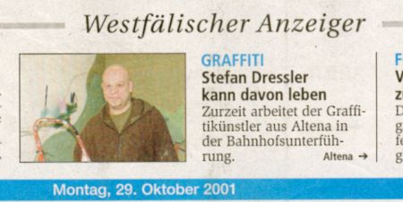 Stefan Dressler. Geb.1968. Von der Idee, zum Entwurf bis hin zur Ausführung stehe ich Ihnen professionell zur Seite. Auftragsgraffiti mit jetzt fast 30 Jahren Erfahrung.